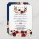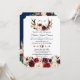Burgundy Floral Navy Blue Antlers Monogram Wedding Invitation
