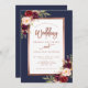 Burgundy Floral Navy Blue Rose Gold Script Wedding Invitation
