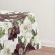 Create an elegant dining setting with this tablecloth featuring a beautiful burgundy floral pattern. Perfect for weddings, dinner parties, holiday gatherings, or special occasions, it adds a refined and timeless charm to your table decor. Ideal for enhancing any meal or event.
