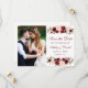 Watercolor Burgundy Marsala Floral Save The Date Photo Engagement Card - White Back