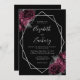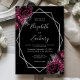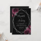 Burgundy Floral Silver Frame Black Wedding Invitation