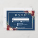 Burgundy Floral Silver Navy Blue Meal Options RSVP Card