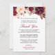 Burgundy Floral Wedding Place Setting Thank You Invitation