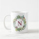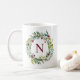 Burgundy Floral Wreath Initial Monogram Coffee Mug