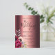 On front: A modern and elegant wedding invitation. A faux copper metallic looking background. Decorated with dark purple and burgundy and rose pink Flowers. Templates for names, date and place of the wedding. The text: The Wedding of is written with a large hand lettered style script, black coloured letters.