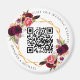Decorated with watercolored roses in burgundy and pink. Elegant white background. A faux gold geometric frame. Add your url for your wedding website.