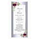 An elegant and bohemian, boho style wedding program. Watercolored feathers, roses, flowers in burgundy. Templates for your names, dates, details of the ceremony and the party. A faux silver and white frame and a chic, glamourous faux silver looking background, black coloured letters.