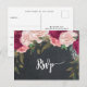 burgundy florals wedding rsvp postcard