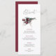 Minimal rustic burgundy Christmas dinner menu card featuring a watercolor floral arrangement of eucalyptus leaves and burgundy flowers with elegant handwriting calligraphy.