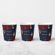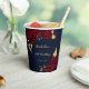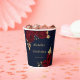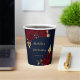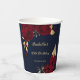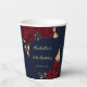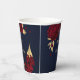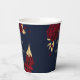 Beautiful burgundy flowers & gold leaves navy blue party paper cup