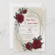 Unique pretty wedding invitation featuring romantic burgundy flowers and green leaves on a beautiful geometric frame .