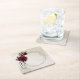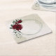 Unique wedding paper coaster featuring romantic burgundy flowers and green leaves.