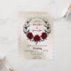 Unique pretty wedding invitation featuring romantic burgundy flowers and green leaves on a beautiful geometric frame .