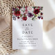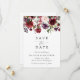Invite friends and family in style and set the tone for your special day with this charming save the date card. Design features burgundy, blush pink and purple watercolor flowers and greenery on white background.
