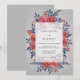 This botanical design features deep burgundy roses and vibrant berries layered with navy blue ferns and foliage. The watercolor elements are set against a soft grey backdrop, creating a moody and sophisticated seasonal aesthetic. This elegant colour palette of rich wine tones and midnight blue is perfect for a refined winter theme.