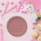 Burgundy Gingham-PAPER PARTY PLATES-Tiny, tiny, squares make up this background pattern of burgundy wine coloured gingham. The gingham patterns are available in assorted background colours. From rustic country and prim gingham to soft pastel baby like colours, several styles are available. Coordinating Zazzle party supplies and gifts are available. Choose any size of Zazzle paper plates available.