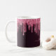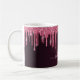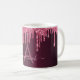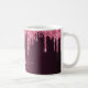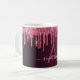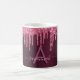 An elegant, girly and glamourous mug. Dark pink cherry coloured faux glitter drips. Deep, dark moody burgundy gradient background. Personalise and add a name and monogram letter. The name is written with a modern hand lettered style script. Light pink and burgundy coloured letters.