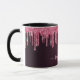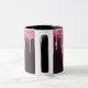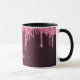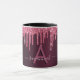 An elegant, girly and glamourous mug. Dark pink cherry coloured faux glitter drips. Deep, dark moody burgundy gradient background. Personalise and add a name and monogram letter. The name is written with a modern hand lettered style script. Light pink and burgundy coloured letters.