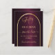A Save the Date card for a 50th birthday party. A burgundy background, decorated with a faux gold arch. Personalise and add a date and your name. The text: Fifty and Save the Date is written with a large trendy hand lettered style script.