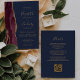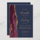Burgundy Gold Agate Navy Blue QR Code Wedding Invitation