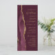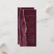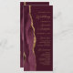 The left-hand edge of this elegant modern wedding program features a burgundy red watercolor agate border trimmed with faux gold glitter. The customisable text combines gold-coloured calligraphy script and sans serif fonts on a burgundy background.