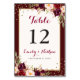 Burgundy Gold Confetti Floral Wedding Table Number