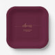 Burgundy & Gold Elegant Lettering Cheers Party Paper Plate