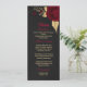 beautiful burgundy flowers and gold leaves elegant black wedding menu.