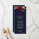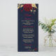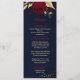 beautiful burgundy flowers and gold leaves elegant navy blue wedding menu.