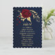 romantic burgundy dark red flowers and gold leaves navy blue seating chart card.