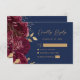 Burgundy Gold Floral Script Navy Blue Wedding RSVP Card