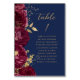 Burgundy Gold Floral Script Navy Blue Wedding Table Number