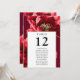 These elegant burgundy red and gold floral wedding table numbers can be personalised with your guest's names in modern typography. Designed by Thisisnotme©