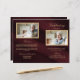 Funeral memorial program featuring on the front a photo of the deceased, thier name, dates, the memorial venue, date of the event, and elegant gold frame. On the inside is an obituary, and order of service; and on the back another photo, a thank you note and the second venue for after the funeral.