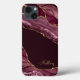 A stylish elegant case for your iPhone features a pattern of burgundy agate with gold glitter. Personalise with your name in a coordinating gold font.