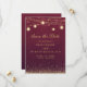 Modern, elegant, and chic burgundy/marsala wedding non-photo Save the Date with gold glitter and string lights. Personalise with your own text.