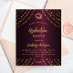 A deep burgundy gradient background decorated with faux gold stars and a cap. Personalise and add a name, party details and year. The text Graduation and the name are written with modern hand lettered style script.