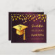 On front: A burgundy gradient background, golden text. Templates for a name and date. The name and the text: Save the Date are written with a modern hand lettered style script. With a faux gold cap, tassel topper.
