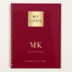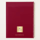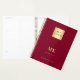 A burgundy background, golden text. Personalise and add your logo, monogram initials, name and a title year 2025 (or any year). Your logo both on the front and the back. Space for your website address on the back.