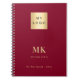 Burgundy gold monogram initials business notebook