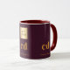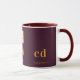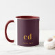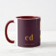 A burgundy background. Personalize and add your business logo, a name and monogram initials (x3). Golden, modern block letters.