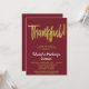 A simple but striking burgundy and gold Thanksgiving party invitation. Glam script text at the top with gold text below and the hosting name in stand-out white