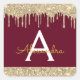 Burgundy Gold Sparkle Glitter Monogram Square Sticker