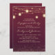 Modern, elegant, and chic burgundy engagement party invitation with gold glitter and string lights and lanterns. Text, fonts, and wording are completely customisable with Zazzle's easy-to-use design tool. This Engagement party invitation belongs to our Burgundy with Gold Glitter and String Lights Wedding Collection. Contact us for help with customisation or to request additional matching products.