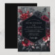 Experience a dramatic and romantic atmosphere with this stunning floral design. Lush, deep red roses and dahlias stand out against a dark, moody background of charcoal grey botanicals and shadowy leaves. This gothic-inspired arrangement creates a sense of elegant mystery for a sophisticated affair.