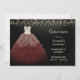 Surprise all your guests with this magical, burgundy, pink and champagne design for the sweet fifteen honoree. Diamond gold glitz overlay on the dress top, and glitter scatter in corners, under string lights on a black background.