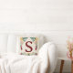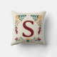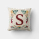 Burgundy Green Gold Flower Decorated Initial Cushion