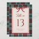 Burgundy Green Plaid Christmas Bow Table Numbers
