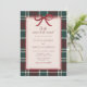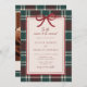 Burgundy Green Plaid Christmas Bow Wedding Invitation