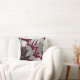 Modern throw pillow features an artistic abstract leaf design in a burgundy and grey colour palette with black accents. This abstract composition is built on combinations of organic leaves and flowers, which are overlapped and interlaced to form a stylish organic pattern. The grey design elements with black accents compliment the burgundy wine coloured background.